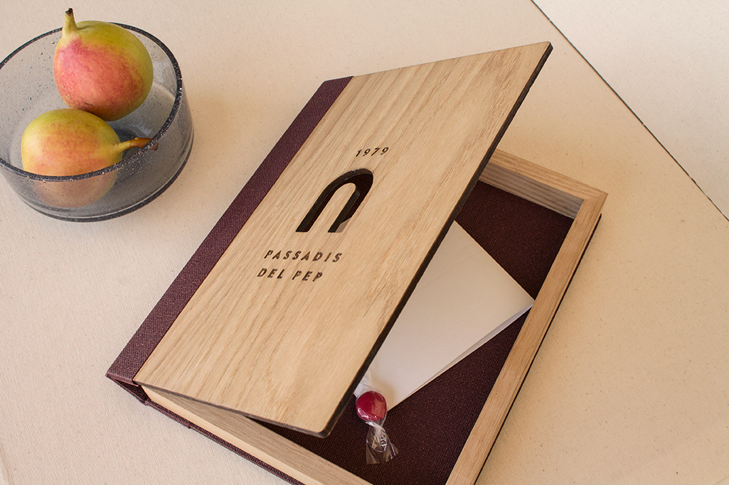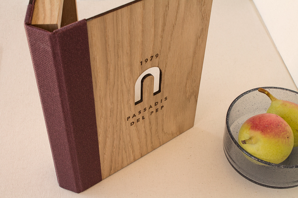 Tapas madera. Portada grabada y troquela.