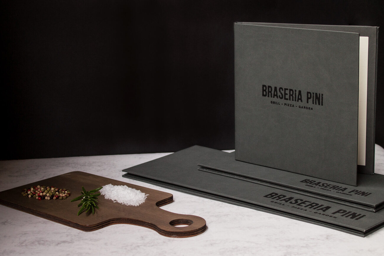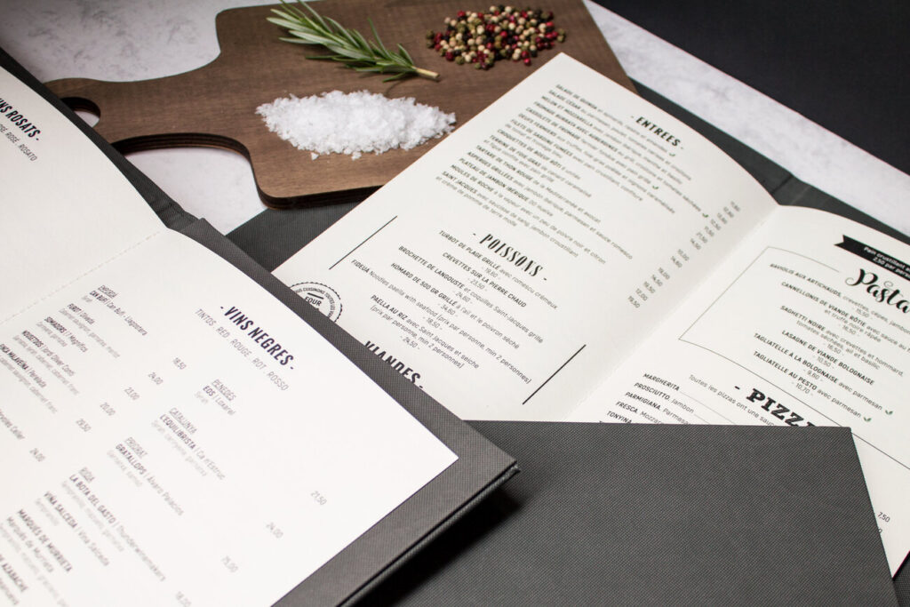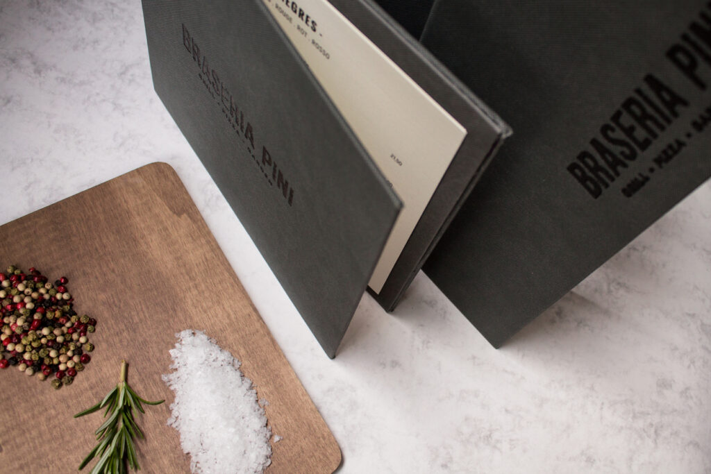 Cartas de cartón forrado en material de encuadernación símil tela color gris.