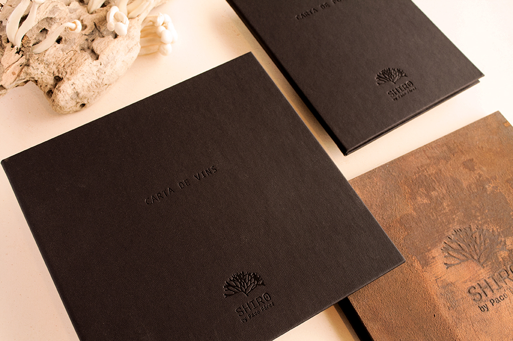 Forro y guardas material de encuadernación símil textil. Sistema sujeción goma elástica. Logotipo stamping seco.